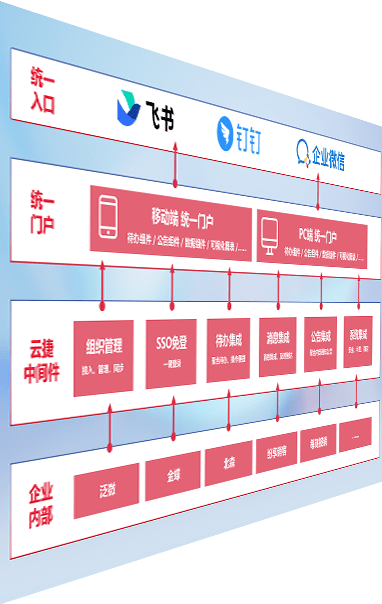 对协作平台提供支持服务,,,支持企业应用与协作平台对接,,,包含组织同步、、、消息集成、、待办集成等。。。支持目前主流的协作平台:钉钉、、、企微和飞书。。