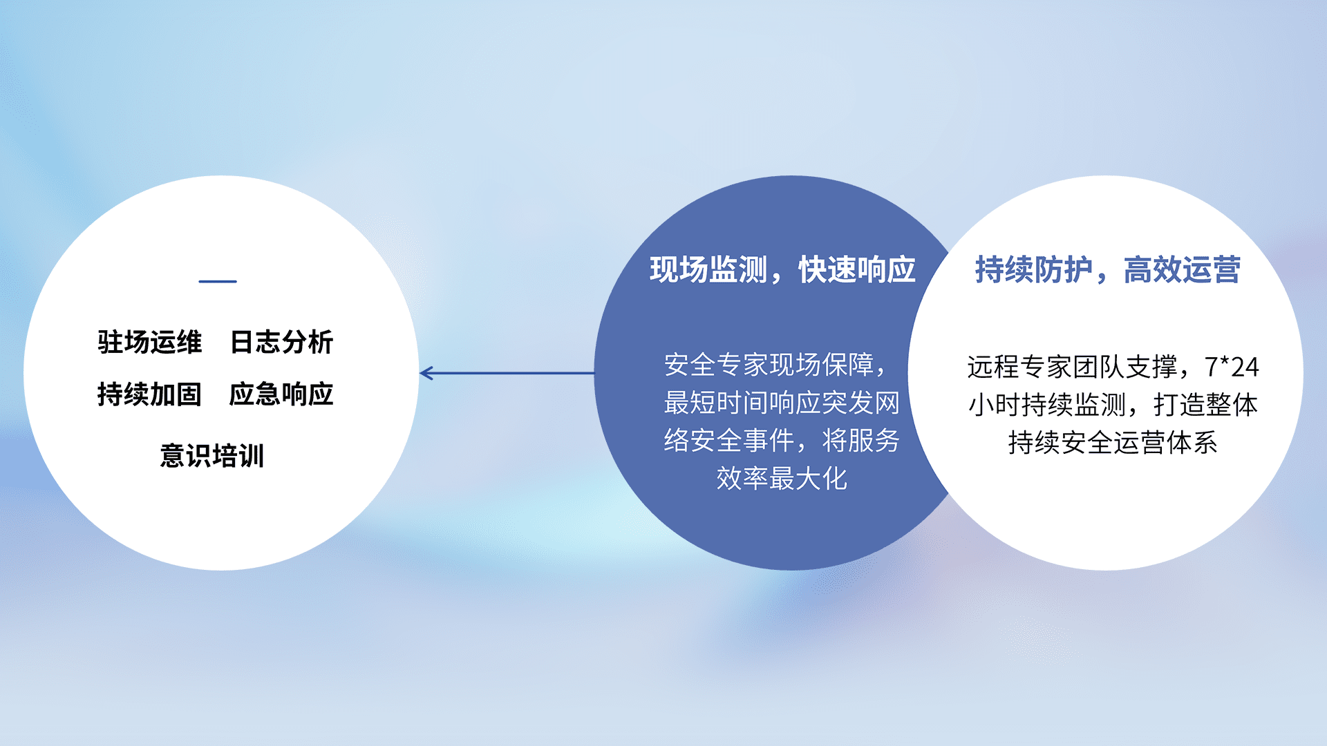 针对客户行业特性,,,提供专属的一站式安全管理服务,,帮助客户全面感知网络空间威胁,,,通过安全专家的线上、、、线下防护支持,,,,实现风险闭环,,,,将安全保障常态化,,为客户打造常态化安全运维运营服务。。。